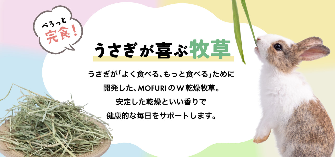 Mofuriのチモシーは牧草を選別して簡易梱包している牧草です。一般的にうさぎやモルモット等の小動物に多く食べられています。仕入れにメーカーを挟まないので価格を安く提供できる人気のチモシーです。